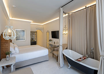 אתם מוזמנים לחוויית אירוח בלתי נשכחת בחדר המציע שילוב מושלם של יוקרה, רוגע ונוף עוצר נשימה. החדר מציע לאורחיו מיטה זוגית או שתי מיטות טווין, פינת ישיבה וחדר רחצה יפייפה משיש עם מקלחון ואמבט עומד. מרפסת החדר מזמינה אתכם ליהנות ממבט פנורמי אל הים התכול.