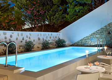וילה עם חדר שינה אחד, לאורחים המחפשים חופשה אקסקלוסיבית ויוקרתית עם פרטיות מלאה. הווילה מעוצבת כחלל פתוח בסגנון המשלב אסתטיקה אלגנטית עם השפעות מקומיות מובהקות, שבא לידי ביטוי בבדים עשירים, ריהוט מוקפד ונוחות בלתי מתפשרת. הווילה כוללת חדר שינה עם מיטה זוגית, סלון מרווח וחדר רחצה אלגנטי משיש עם מקלחון. במרפסת הגדולה המקיפה את הווילה יש בריכה פרטית מוקפות בצמחייה ים־תיכונית וסלעים טבעיים המשתלבים בנוף המקומי, ומזמינה אתכם לטבילה מרעננת מול נופים מרהיבים של היופי השקט והעוצמתי של הים האגאי.
