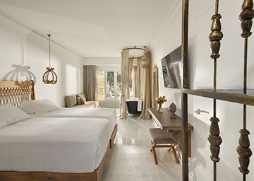 חדר המציע שלווה אמתית עם בריכת שחייה פרטית ושקטה במיוחד. החלל היוקרתי הזה מציע שילוב מדויק של נוחות, אלגנטיות ופרטיות, לחופשה רגועה ובלתי נשכחת. החדר כולל מיטה זוגית או שתי מיטות טווין, פינת ישיבה וחדר רחצה אלגנטי עם מקלחון. מרפסת החדר צופה אל גני המלון והבריכה הפרטית שלכם מזמינה אתכם לטבילה מרעננת תחת קרני השמש הנעימות.