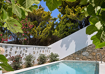 הווילה מציעה מרחבים מוארים בשילוב חמימות של עץ ואבן, עם נגיעות עיצוב מוקפדות שמעניקות לה אווירה רגועה ונינוחה. היא מציעה 5 חדרי שינה מעוצבים, כל אחד בעל אופי שונה וייחודי, ו-6 חדרי רחצה מודרניים ומפוארים. בנוסף יש בווילה מטבח מאובזר כולל פינת אוכל, סלון מרווח עם ריהוט נעים ונוח, ומרפסות פרטיות עם נוף עוצר נשימה. הווילה נפתחת לחצר גדולה עם בריכה פרטית, מיטות שיזוף ופינת ברביקיו, כל אלו משקיפים אל המרחבים הכחולים של הים האגאי, עד לאי דלוס הנראה באופק.