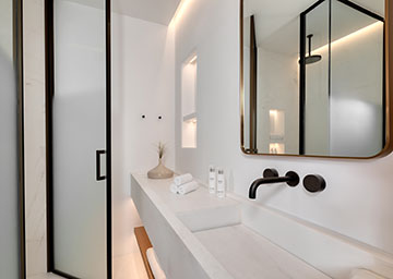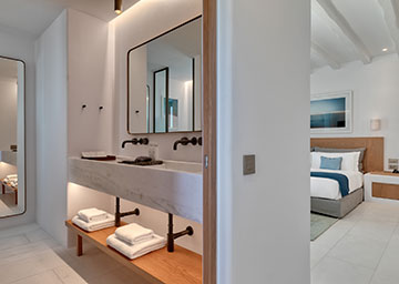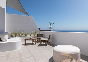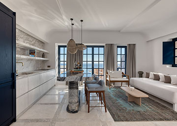 תנו לנופי הים האגאי המרהיבים להעניק לכם השראה במהלך שהות יוקרתית בלב סנטוריני. הסוויטה, הנהנית ממיקום מועדף במיוחד בתוך אתר הנופש, כוללת חדר שינה עם מיטת קינג סייז וסלון נפרד ומרווח עם שתי ספות היכולות לשמש כמיטה נוספת וחדר רחצה אלגנטי עם מקלחון. המרפסת המרוהטת של הסוויטה היא המקום המושלם ליהנות מהבריזה הרכה של הים ומהאווירה האגאית הקסומה.