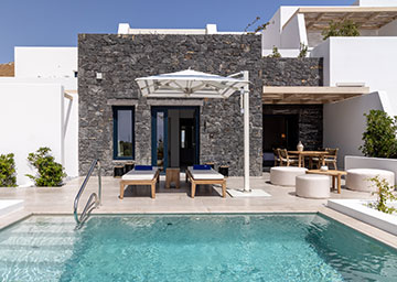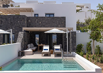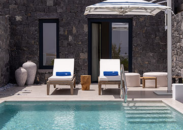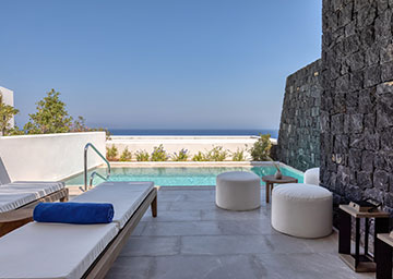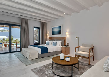 חדר המציע מפלט של אלגנטיות ושלווה, החדר מעוצב בטוב טעם ומבטיח חוויית אירוח בלתי נשכחת. החדר כולל מיטת קינג סייז, פינת ישיבה עם ספה היכולה לשמש כמיטה נוספת וחדר רחצה אלגנטי עם מקלחון. לחדר מרפסת מרוהטת עם בריכה פרטית המזמינה אתכם לטבילה מרעננת מול קרני השמש המלטפות.