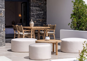 Sandblu הוא ריזורט יוקרתי ומתוכנן בקפידה, השוכן בלב אזור Thira העתיקה, בתוך התפאורה מעוררת ההשראה של סנטוריני.