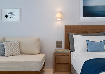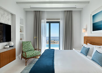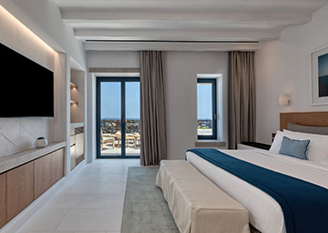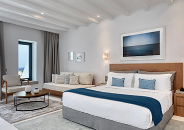 חדר המעוצב בסטייל מוקפד המציע נופי ים נהדרים. החדר כולל מיטת קינג סייז, פינת ישיבה עם ספה היכולה לשמש כמיטה נוספת וחדר רחצה אלגנטי עם מקלחון. לחדר מרפסת מרווחת ומרוהטת המזמינה אתכם להישען לאחור, להירגע ולספוג את האווירה השלווה והנוף הפתוח.