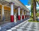 אחד ממוקדי העלייה לרגל של קורפו נחשב גם לאחד מפניני החן התיירותיים של אירופה כולה. הארמון שוכן כעשרה קילומטרים מדרום לעיר הבירה, בעיירה גסטורי (Gastouri), ונחשב לאחד מבתי המלוכה המפורסמים ביותר באירופה. הארמון המרשים, שנבנה ב-1890 לכבוד הקיסרית האוסטרית אליזבת (שידועה יותר בכינויה "הנסיכה סיסי") בידי בעלה, הוקדש לגיבור המיתולוגיה היוונית אכילס, שהיה אהוב במיוחד על הקיסרית. מעבר למוזיאון ההיסטורי שפועל בו, הארמון מציע נקודת תצפית פנורמית מרהיבה על חופי הים האדריאטי ועל הרי אלבניה (יש שיזהו את המקום מהסצנה המפורסמת בסרט ג'יימס בונד "לעיניך בלבד").