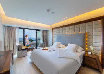 סוויטות מרווחות אלה ממוקמות בקומות 2,3,4 של המלון כאשר כל סוויטה יוקרתית מציעה עיצוב קלאסי, אלגנטי ועכשווי עם נופים מרהיבים של הים, ריהוט מפואר ורצפות שיש. הסוויטות מציעות מפלט יוקרתי ורגוע שמבטיחים הנאה מירבית. לסוויטה מרפסת כפולה הצופה לנוף המרהיב של הים ושל גני המלון היפיפיים. לסוויטות יש סלון נוח וחדר שינה נפרד ען חדר רחצה אלגנטי עם אמבטיה.