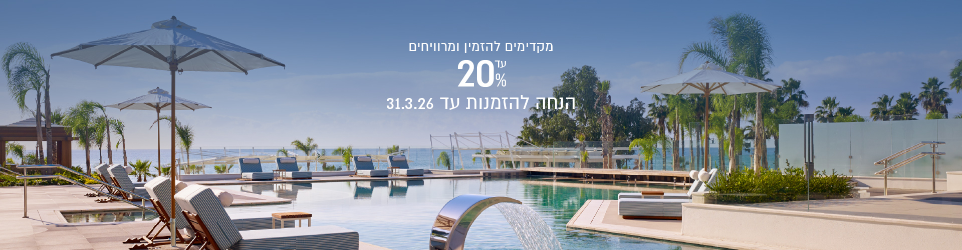 ✦ הזמינו עכשיו חופשה לאביב-קיץ 26' וקבלו עד 20% הנחה! תקף להזמנות שיבוצעו עד 31.3.26 ✦ מחירי החבילות שאנו מציעים כוללים בתוכם את הטבת הרישום המוקדם של בית המלון (ההנחה מגולמת במחיר). שיעור ההנחה משתנה בהתאם לתקופת השהייה וסוג החדר.