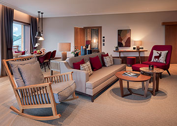 סוויטה בסגנון טירולי המשרה תחושה ביתית מהרגע הראשון. בסוויטה שני חדרי שינה, אחד עם מיטה זוגית והשני עם מיטת יחיד, לשניהם חדרי רחצה המספקים את הפרטיות הדרושה. הסלון הנפרד, עם תנור האריחים היוצר אווירה חמימה, מזמין את השוהים בסוויטה לבלות יחד. ממרפסת הסוויטהנשקף נוף מרהיב של הרי טירול.