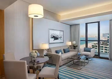 סוויטה ייחודית, מוארת ומרווחת המשלבת אלגנטיות ונוחות ומציגה נוף נפלא של הים וקו הרקיע של אזור המרינה של דובאי. הסוויטה כוללת חדר שינה עם מיטת קינג סייז מפנקת, סלון נפרד עם ספה היכולה להיפתח למיטה נוספת, פינת אוכל וחדר רחצה יוקרתי עם מקלחון ואמבטיה. לסוויטה מרפסת מרוהטת המזמינה אתכם לנוח ולהירגע מל הנוף המרהיב. מי שישהה בסוויטה הזו יקבל גישה ל- Executive Lounge של המלון בו אפשר ליהנות מארוחת בוקר, שעת קוקטיילים ונשנושים בזמן שאתם צופים בנוף נהדר.