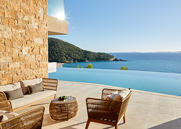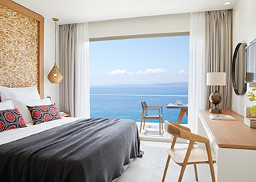 סוויטה מרווחת במיוחד המציעה נוחות מירבית עם חדר שינה גדול וסלון עם ספה שנפתחת למיטה. בחדר הרחצה המפנק יש גם מקלחון וגם אמבטיה. לסוויטה מרפסת גדולה עם נופים מרהיבים של הים הכחול, פינת ישיבה מפנקת ובריכה פרטית גדולה.
