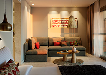 סוויטת משפחתית יפה ומסוגננת עם נופים מרהיבים של הים. בסוויטה יש חדר שינה עם מיטה זוגית או מיטות טווין, סלון נפרד עם שתי ספות נפתחות למיטות יחיד וחדר רחצה עם מקלחון. מרפסת הסוויטה מרווחת ויש בה פינת ישיבה, גישה לבריכה משותפת לכמה חדרים ונופים נהדרים.