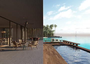 השקיעות המרהיבות של המלדיבים מקבלות מקום של כבוד בווילות האלה, הממוקמות על הלגונה במיקום עוצר נשימה ביופיו עם נוף פתוח של האוקיינוס. בווילה, המספקת לשוהים בה מרחב מרווח ויוקרתי, המעוצב בחומרים טבעיים המשתלבים בהרמוניה מושלמת עם הסביבה, יש שני חדרי שינה אחד עם מיטת קינג סייז והשני עם שתי מיטות טווין (ישנה אפשרות להוסיף עוד שתי מיטות ילד) ולהם שני חדרי רחצה צמודים ומרווחים עם מקלחון. הסלון ופינת האוכל מעוצבים בחלל פתוח ולצידם מטבחון. חלונות פנורמיים מרצפה עד תקרה נפתחים אל הדק הגדול המאפשר ליהנות ולהירגע במספר פינות ישיבה ובבריכה הפרטית.