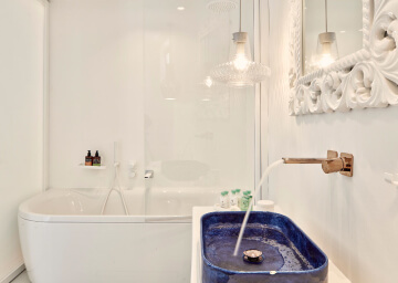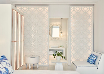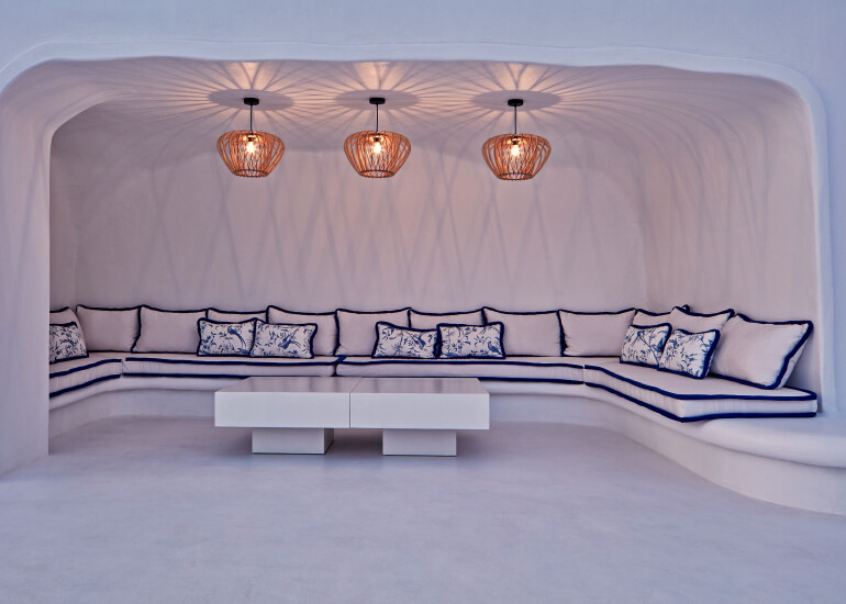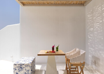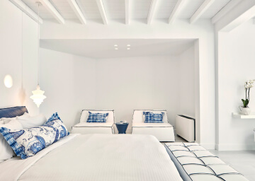סוויטות יוקרתיות ואלגנטיות המעוצבות בגווני כחול לבן ומעניקות נוחות מקסימלית בשילוב של עיצוב פנים מודרני, המבטיח חווית אירוח ברמה הגבוהה ביותר. הסוויטות כוללות טרסות פרטיות מרווחות בהן ג'קוזי למול נופים עוצרי נשימה של הים האגאי להשלמת החוויה היוקרתית.