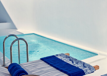 סוויטות יוקרתיות, אלגנטיות ומרווחות המעוצבות בגווני כחול לבן ומעניקות נוחות מקסימלית בשילוב של עיצוב פנים מודרני, המבטיח חווית אירוח ברמה הגבוהה ביותר. הסוויטות כוללות טרסות פרטיות מרווחות בהן ג'קוזי למול נופים עוצרי נשימה של הים האגאי להשלמת החוויה היוקרתית.