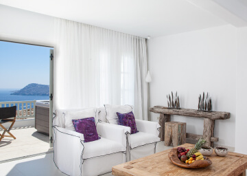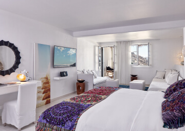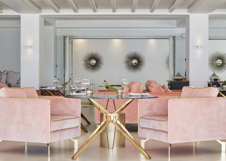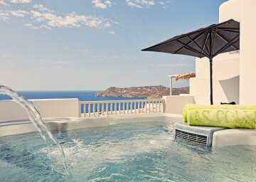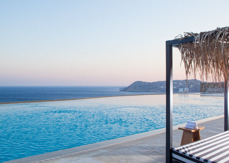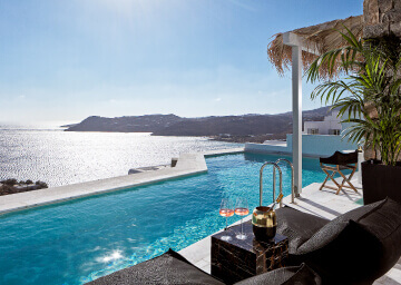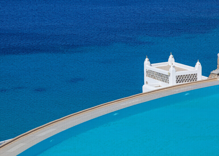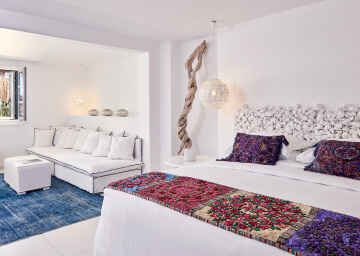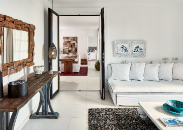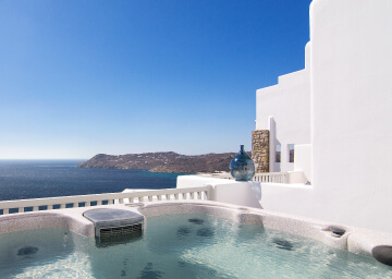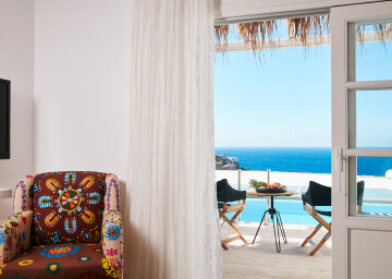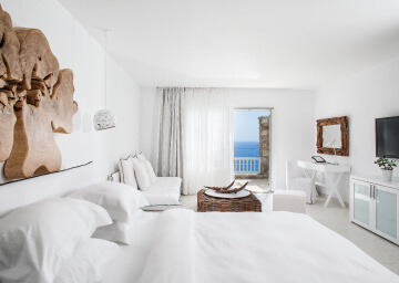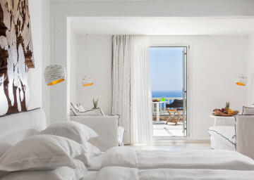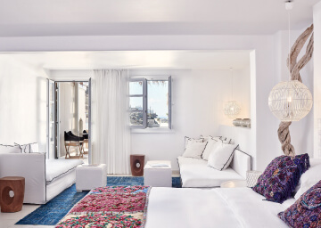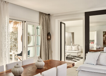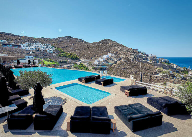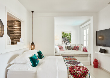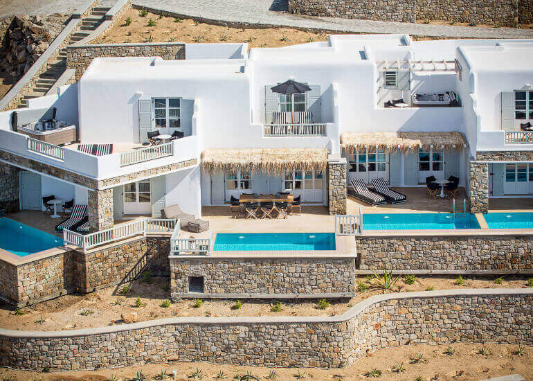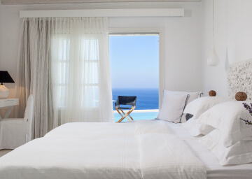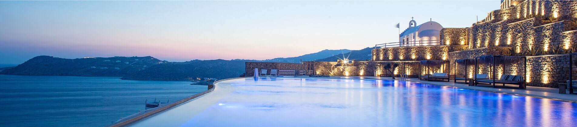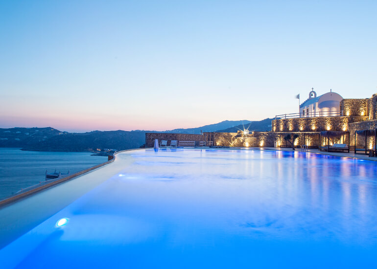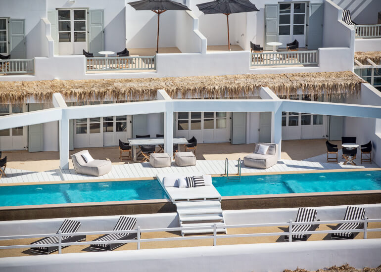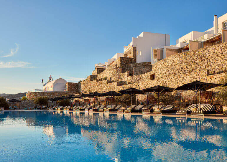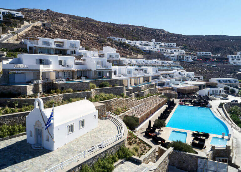 מלון נופש יוקרתי, חלק מקומפלקס מלונות של Myconian collection, נפתח בשנת 2012 למרגלות חוף הים של Elia.