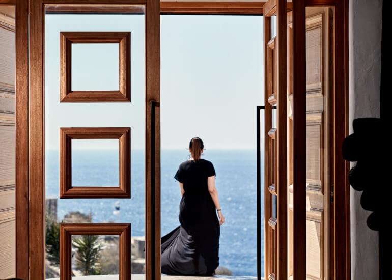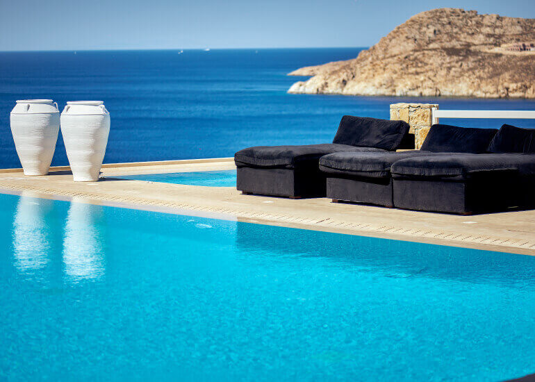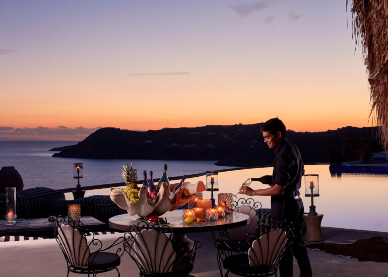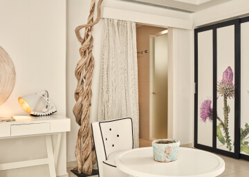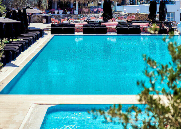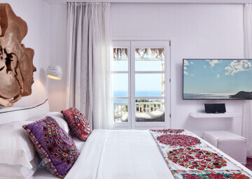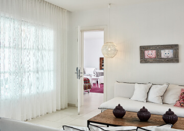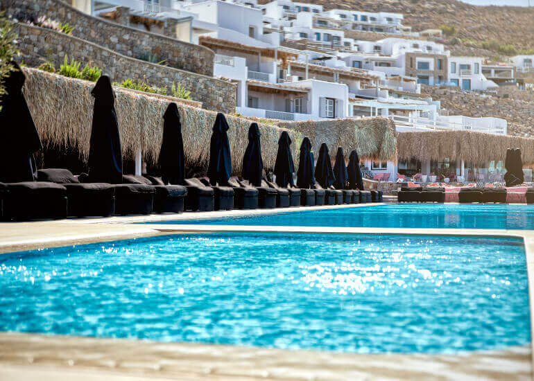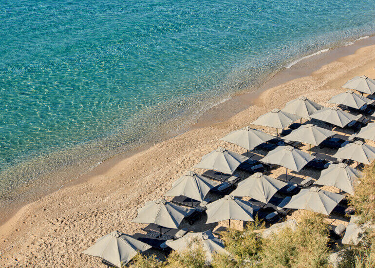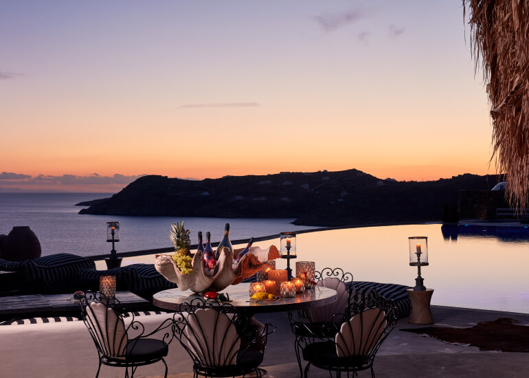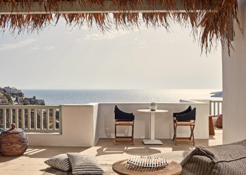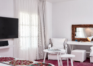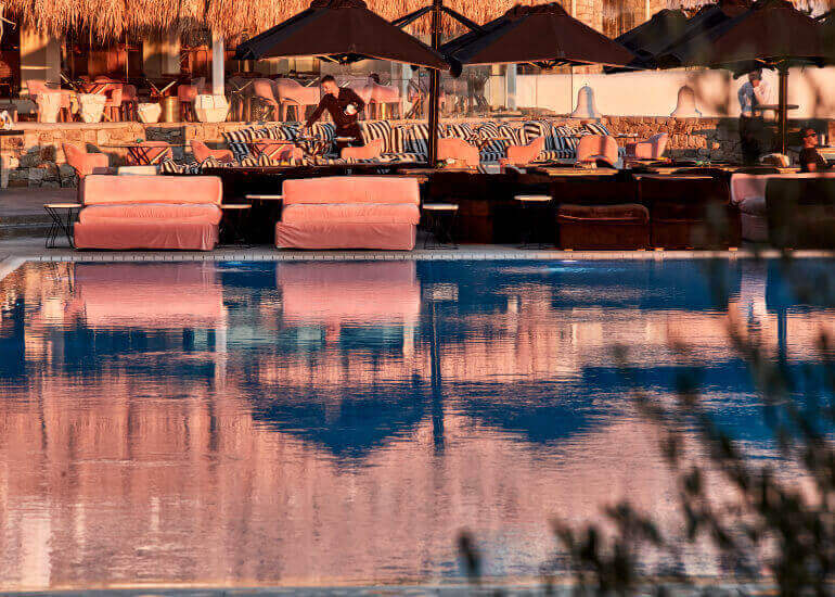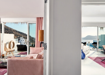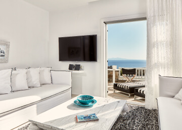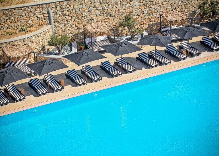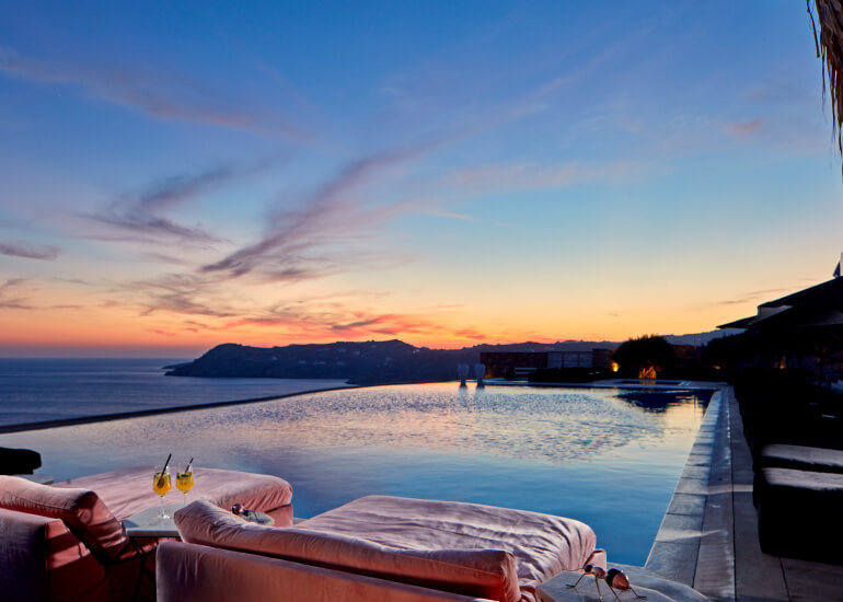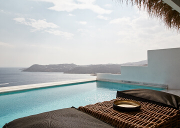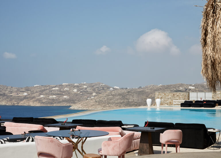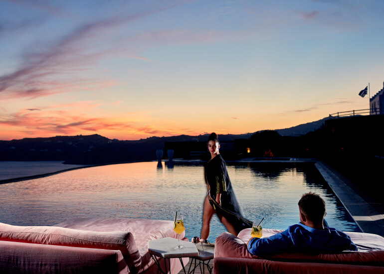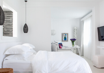 מלון נופש יוקרתי, חלק מקומפלקס מלונות של Myconian collection, נפתח בשנת 2012 למרגלות חוף הים של Elia.