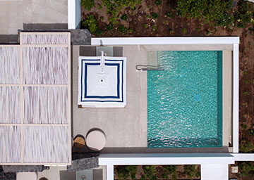 הווילה כוללת שני חדרי שינה אלגנטיים, כל אחד עם מיטת קינג סייז וחדר רחצה מרשים עם מקלחון. במרפסת המרוהטת של הווילה יש בריכה פרטית והיא מזמינה אתכם לטבילה מרעננת או להתרווח מול הנופים המהפנטים והאווירה הקסומה של סנטוריני.