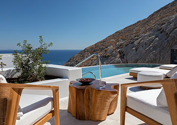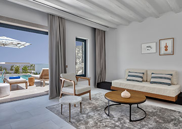 סוויטה שלווה ומעודנת, המשלבת אלגנטיות ונינוחות לחופשה בלתי נשכחת. הסוויטה מעוצבת בקפידה ומציעה נוחות וסטייל. היא כוללת חדר שינה עם מיטת קינג סייז, סלון ובו שתי ספות היכולות לשמש כמיטות נוספות וחדר רחצה מרשים עם מקלחון. לסוויטה מרפסת מרוהטת עם בריכה פרטית המזמינה אתכם ליהנות מרגעים בלתי נשכחים תחת השמש המלטפת.