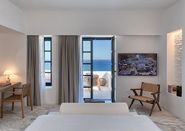 חדר המעוצב בסטייל מוקפד המציע נופי ים נהדרים. החדר כולל מיטת קינג סייז, פינת ישיבה עם ספה היכולה לשמש כמיטה נוספת וחדר רחצה אלגנטי עם מקלחון. לחדר מרפסת מרווחת ומרוהטת המזמינה אתכם להישען לאחור, להירגע ולספוג את האווירה השלווה והנוף הפתוח.