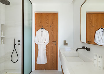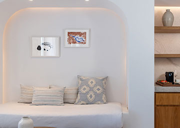 תנו לנופי הים האגאי המרהיבים להעניק לכם השראה במהלך שהות יוקרתית בלב סנטוריני. הסוויטה, הנהנית ממיקום מועדף במיוחד בתוך אתר הנופש, כוללת חדר שינה עם מיטת קינג סייז וסלון נפרד ומרווח עם שתי ספות היכולות לשמש כמיטה נוספת וחדר רחצה אלגנטי עם מקלחון. המרפסת המרוהטת של הסוויטה היא המקום המושלם ליהנות מהבריזה הרכה של הים ומהאווירה האגאית הקסומה.