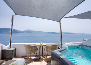 סוויטה מרווחת המעוצבת בסגנון מודרני בשילוב קווים נקיים המתאימים לסיגנון המסורתי של האי, המציעה חדר שינה עם מיטת קינג סייז, פינת ישיבה מרווחת עם ספה הנפתחת למיטה נוספת, חדר רחצה מעוטר פסיפס ומרפסת מרוהטת בפינת ישיבה, מיטות שיזוף וג'קוזי מפנק למול נופים מרהיבים של הקלדרה.