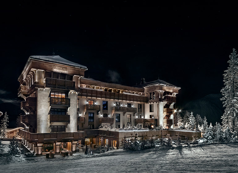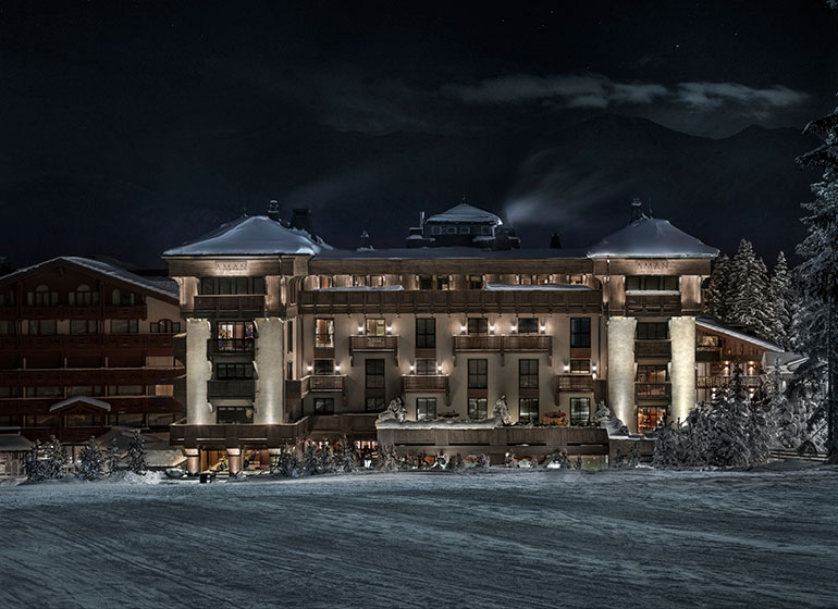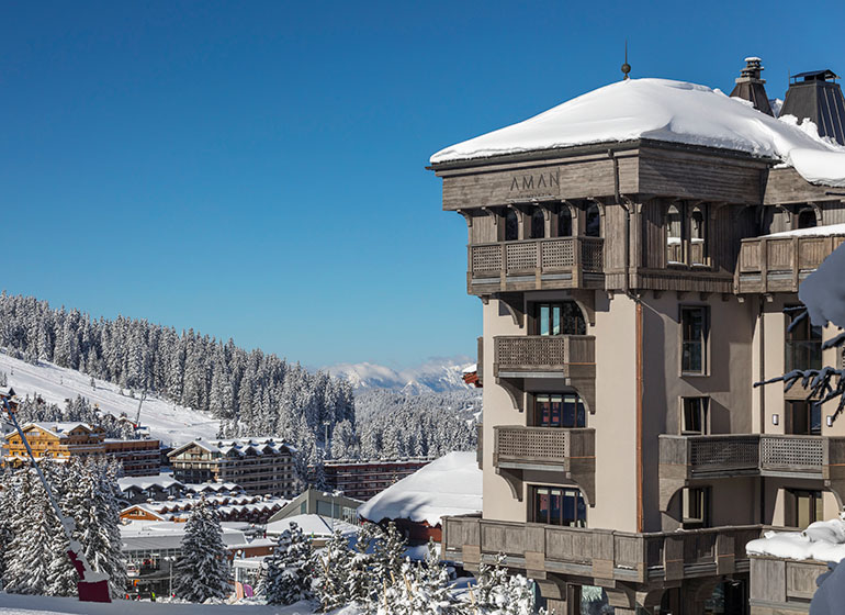 המלון האלגנטי והיוקרתי Aman Le Mélézin ממוקם בקורשבל 1850, אחד מכפרי הסקי האופנתיים ביותר באלפים הצרפתיים. המלון מציע חווית סקי ski-in, ski-out ישירות למסלולי הסקי של Bellecôte Piste וגישה לאזור הסקי של שלושת העמקים, שהוא הגדול מסוגו בעולם.