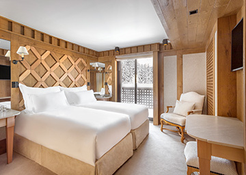 חדר המשלב סגנון עיצוב אלפיני ונוחות מירבית. בחדר יש שתי מיטות טווין, אזור הלבשה גדול וחדר רחצה אלגנטי עם מקלחון גדול ונופים של הכפר המושלג. זהו חדר אידאלי למי שרוצים מקום מפלט נעים ונוח להגיע אליו אחרי יום של סקי בהרים. ניתן לחבר את החדר (לפי בקשה) עם חדר מסוג Chambre Melezin, עבור משפחה עם ילדים.