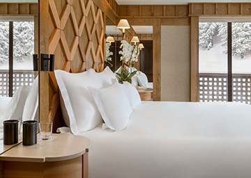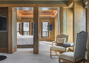 חדר מרווח עם אווירה אלפינית אלגנטית, עם דלתות הנפתחות למרפסות הצופות לדרום ולמערב, לנופים המרהיבים של מסלולי הסקי והעמק, ומכניסות לחדר הרבה אור טבעי. בתוך החדר יש מיטת קינג סייז, אזור הלבשה מרווח וחדר רחצה עם אמבטיה. כל אלה יוצרים מקום מפלט פרטי ומרגיע להתחדשות האנרגיות אחרי יום על מסלולי הסקי. ניתן לחבר את החדר עם חדרים מסוג Chambre Junior, ליצירת חלל אירוח המתאים למשפחות.