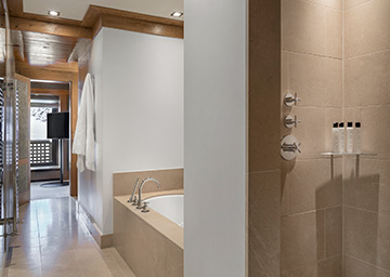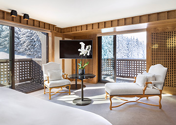 חדרים אלו פונים לכיוון דרום ומשקיפים על מסלולי הסקי של Bellecôte Piste ומציעים מרפסת פרטית להנאה מהנוף ואוויר ההרים הנהדר. רהיטי העץ וחיפוי העץ של הקירות מהדהדים את מראות היער וההרים שבחוץ. בחדר יש מיטת קינג סייז או שתי מיטות טווין, אזור הלבשה מרווח וחדר רחצה גדול ואלגנטי עם מקלחון ואמבטיה עמוקה.