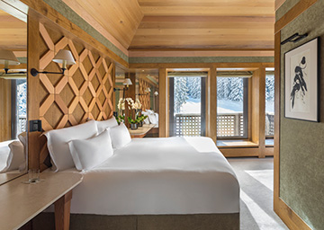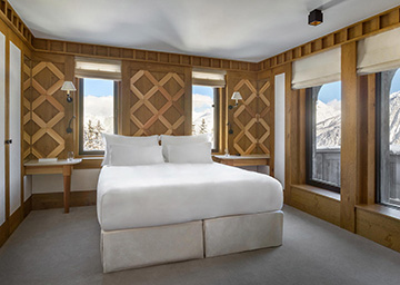 חדר המציע נופים נפלאים של ההרים המושלגים ומהווה מקום מפלט רגוע מושלם אחרי יום של גלישה. החדר מעוצב עם רהיטי עץ ומחופה עץ אלון, בהשראת הסביבה האלפינית והוא מציע לשוהים בו מיטת קינג סייז או שתי מיטות טווין, אזור הלבשה וחדר רחצה אלגנטי עם מקלחון וכיור כפול. חלונות גדולים מכניסים לחדר אור טבעי ואת הנופים הנפלאים.