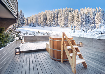 חדרים אלה מציעים מרפסת גדולה ובה אמבטייה נורווגית חמה ממנה אפשר להשקיף על המראה הנפלא של מסלולי הסקי, תוך כדי התרגעות מפנקת במים החמים. בתוך החדר יש מיטת קינג סייז או שתי מיטות טווין, אזור הלבשה מרווח וחדר רחצה גדול ואלגנטי עם אמבטיה עמוקה, מקלחון נפרד וכיור כפול. זהו חדר אידאלי למנוחה של אחרי הסקי, המרפסת הפונה דרומה מזמינה את השוהים בחדר ליהנות מאוויר ההרים הצלול והרענן. ניתן לחבר את החזר עם חדר מסוג Chambre Ski Piste עבור משפחות.
