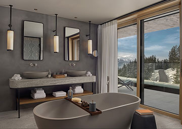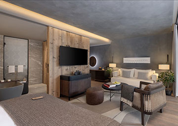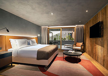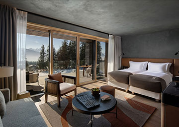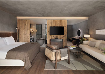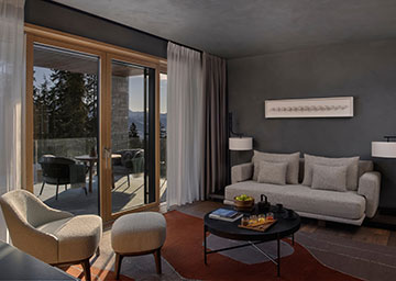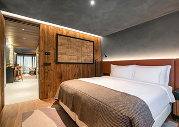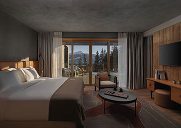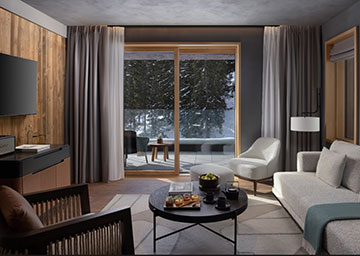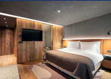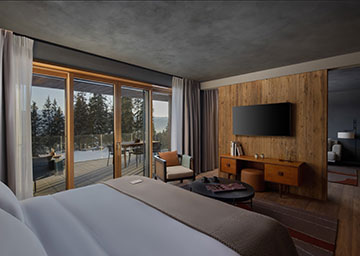 חדר המעוצב באלגנטיות ואותנטיות עם סגנון עכשווי ותקרות גבוהות, חלונות גדולים המחברים את הפנים עם החוץ והסביבה הטבעית והמרפסת שמספקת מרחב חיצוני עם נוף אל מסלול הסקי והיער האלפיני. החדר כולל מיטת קינג סייז מפנקת או שתי מיטות טווין, פינת ישיבה, חדר רחצה אלגנטי עם אמבטיה ומקלחון גשם ומרפסת המזמינה אתכם לנוח ולהירגע מול נוף נהדר של מדרונות הסקי והיער.