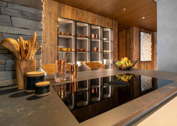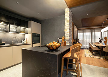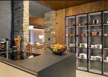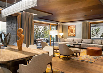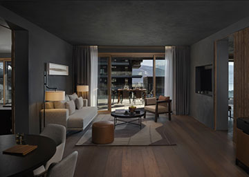 דירה זו משתרעת על החזית הדרומית והמערבית של הקומה החמישית ומציעה נופים עוצרי נשימה להרים. דירה זו אידיאלית עבור משפחות וקבוצות ומשרה אווירה ביתית ושלווה. הדירה מעוצבת בסגנון עכשווי עם שימוש בעץ ואבן, חומרי גלם מקומיים, רהיטים המעוצבים בהתאמה אישית וחפצי אומנות מקוריים מקומיים. לדירה שלושה חדרי שינה עם מיטות קינג סייז או שתי מיטות טווין, לכולם חדרי רחצה צמודים עם אמבטיה ומקלחון גשם. במרכז הדירה נמצא סלון מרווח ולצידו פינת אוכל ומטבח מאובזר. מרפסת הדירה גדולה ומרווחת וכוללת מספר אזורי ישיבה כולל פינת אוכל וסלון חיצוניים והיא משקיפה על נוף מרהיב של ההרים המושלגים ומסלולי הסקי.